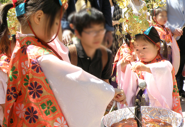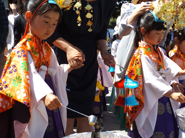 白像、→ ガールスカウト鼓笛隊、→ 稚児、の順に並び、中央通りを善光寺まで大パレード。
